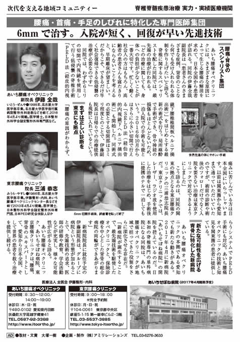2017年2月8日(水)発売の週刊新潮に「次代を支える地域コミュニティー 脊椎脊髄疾患治療 実力・実績医療機関」として当グループ3病院が掲載されました。