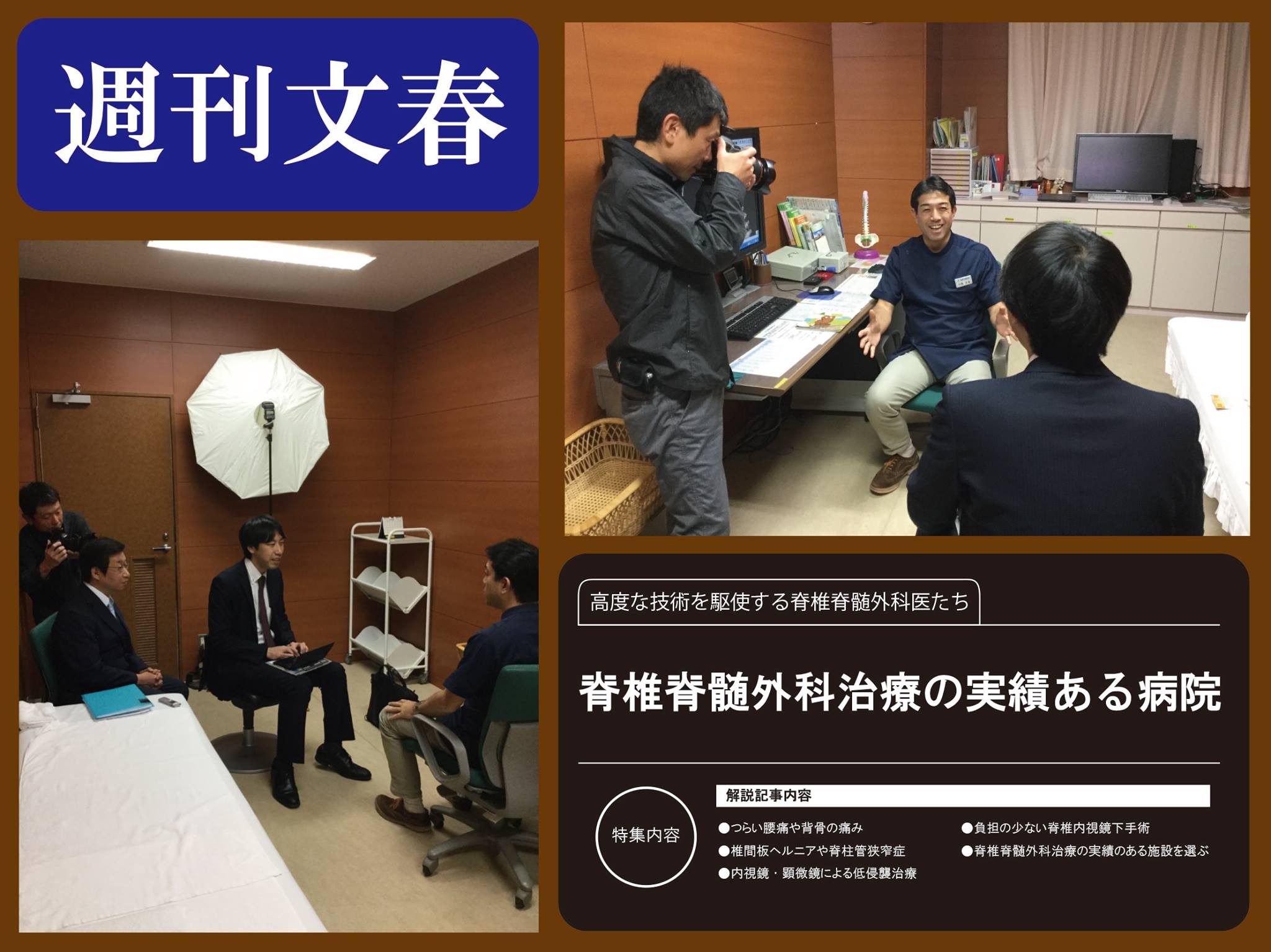 2016年12月22日(木)発売の週刊文春に「脊椎脊髄外科治療の実績ある病院」として、当グループ3病院が掲載されました。